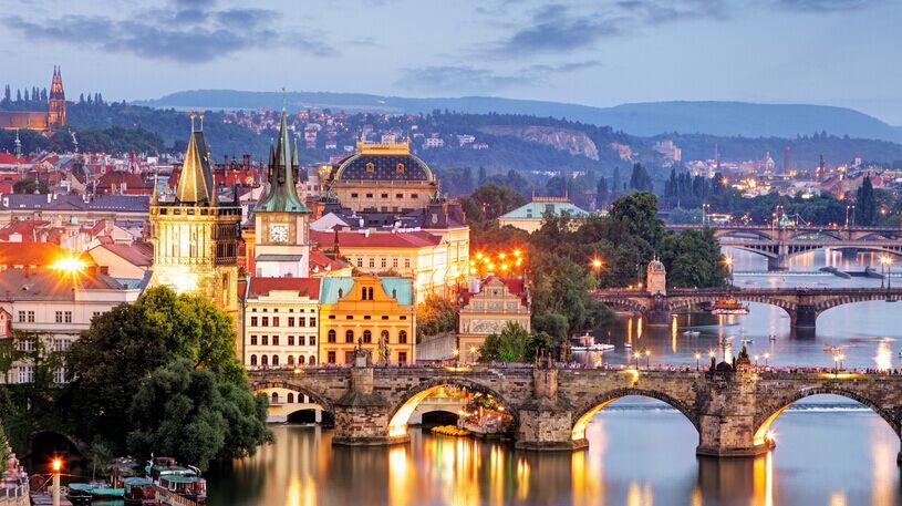 游覽捷克啤酒小鎮(zhèn)南波西米亞州首府—布杰約為采,美國的“(Budweiser)百威”啤酒來源于此。小鎮(zhèn)中心廣場,紀念柱。之后開車前往捷克世界文化遺產(chǎn)小鎮(zhèn)克魯姆洛夫小鎮(zhèn)。游覽波希米亞地區(qū)僅次于布拉格城堡的捷克第二大規(guī)模的城堡—克魯姆洛夫城堡(外觀),從城墻仰望伏爾塔瓦河畔,感到一種震撼力和美感。據(jù)稱這里是攝影師的*愛,您也可從各個角度拍攝這座美麗小鎮(zhèn)。之后開車前往號稱金色之都的捷克首都----布拉格,晚餐后入住酒店休息。