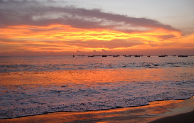 早餐后前往【南灣】,乘玻璃底船前往【海龜島】,如果您感興趣可以參加到南灣精彩的水上活動(dòng)中去,【洋洋斷崖】,遠(yuǎn)眺斷崖,欣賞海天一色的美景,氣勢(shì)磅礡;仿佛一幅畫(huà),并享用當(dāng)?shù)靥厣鞠挛绮琛俊G巴竞I駨R】(約1小時(shí))海中形似船只的巨巖上,聳立著巴厘島六大寺廟之一,祭拜海之守護(hù)神的海神廟,搭配南洋夕照的熱帶夕陽(yáng)海景,成為巴厘島代表性風(fēng)景之一。隨后前往【金巴蘭海灘落日】,在海邊享用晚餐,把巴厘島的旅游帶入一個(gè)全新的境界。