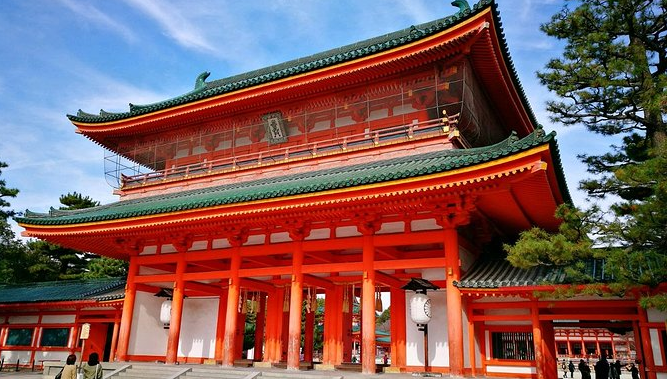 平安神宮:平安神宮是位于日本京都府京都市的神社,主祭神是第50代桓武天皇和第121代孝明天皇。明治28年(1895年)3月15日,為紀(jì)念桓武天皇平安遷都1100周年,平安神宮創(chuàng)建。昭和15年(1940年),為紀(jì)念日本建國2600周年,平安京末代天皇:孝明天皇合祀。平安神宮的建筑是模仿平安時代皇宮的部分建筑修建的。