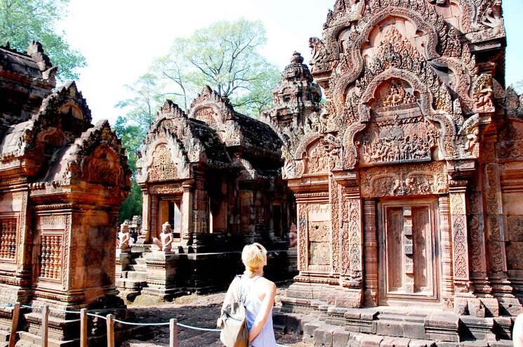 【吳哥窟】又稱小吳哥,是世界上規(guī)模最大的宗教建筑。也是吳哥古跡中保存最完好的建筑,作為柬埔寨的標(biāo)志被印在國旗上。它規(guī)模宏大、完美對稱、浮雕精美,體現(xiàn)了高棉古典建筑藝術(shù)的高峰。如果天氣狀況允許,傍晚可觀看著名的“吳哥夕照”(約1小時),這也是攝影愛好者的最佳拍攝地!