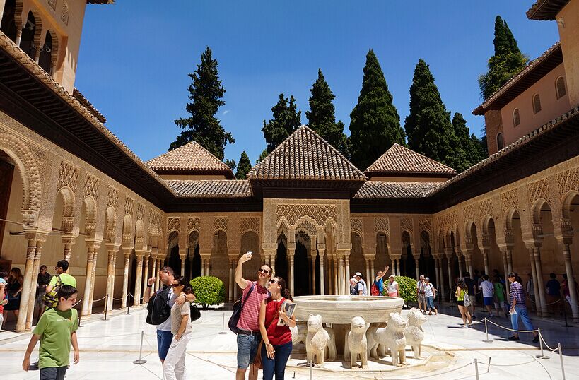 早餐后乘車前往石榴之城格拉納達(dá),這是一座適合漫步而且引人遐想的城市。名勝古跡所顯示出的藝術(shù)輝煌以及噴泉、池塘和公園的碧波所展現(xiàn)出的水光迷離之美,令人賞心悅目。抵達(dá)后參觀阿爾罕布拉宮(外觀),阿爾罕布拉宮是中世紀(jì)摩爾人在西班牙建立的格拉納達(dá)王國的王宮。1492年摩爾人被逐出西班牙后,建筑物開始荒廢,1828年在斐迪南七世資助下,經(jīng)建筑師何塞·孔特雷拉斯與其子、孫三代進(jìn)行長期的修繕與復(fù)建,才恢復(fù)原有風(fēng)貌。如今的阿爾罕布拉是世界遺產(chǎn),吸引了無數(shù)的游客。
