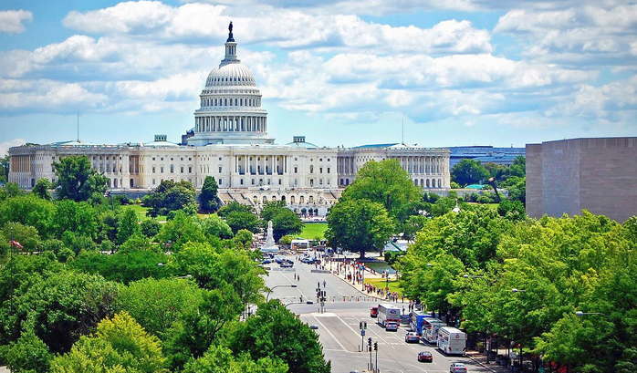 【國會大廈】(外觀,約15分鐘)是美國國會的辦公大樓,此地后被稱為國會山。從遠處望去,國會大廈是一座巨柱環(huán)立的建筑物,中間是皇冠形的圓頂式大樓,在華盛頓市內(nèi)很多地方都能看到國會大廈的雄姿。國會大廈是華盛頓的中心點,占據(jù)著全市最高的地勢,同時又是華盛頓最美麗、最壯觀的建筑。